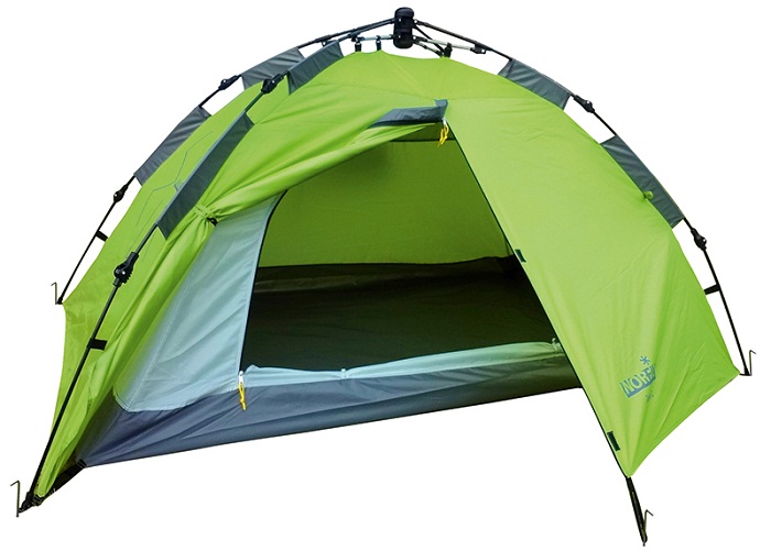Tenda a doppio strato con telaio semiautomatico.