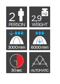 La tenda può essere montata in pochi secondi da una sola persona.